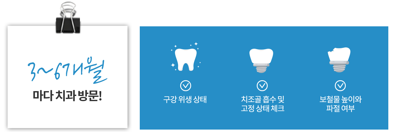 통증 없이 문제가 진행될 수 있습니다. 따라서, 임플란트 관리는 필수입니다!